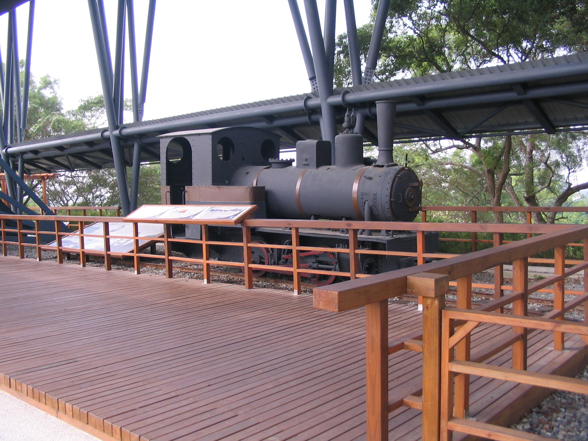 八田技師當時使用「半水力填築式工法」來建造大壩,因此需要許多石頭、細沙、泥土等材料,此火車頭便是當時用來從台南市大內區運送材料至烏山頭建造大壩的運輸工具,今日特將此火車頭展示於水庫一處供遊客欣賞。